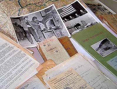 Unter den Dokumenten befanden sich neben den Fotos aus dem befreiten Lagern Dora und der Boelcke-Kaserne u.a. Vernehmungsprotokolle aus dem Prozess und Beweisstücke wie das Soldbuch eines SS-Angehörigen.