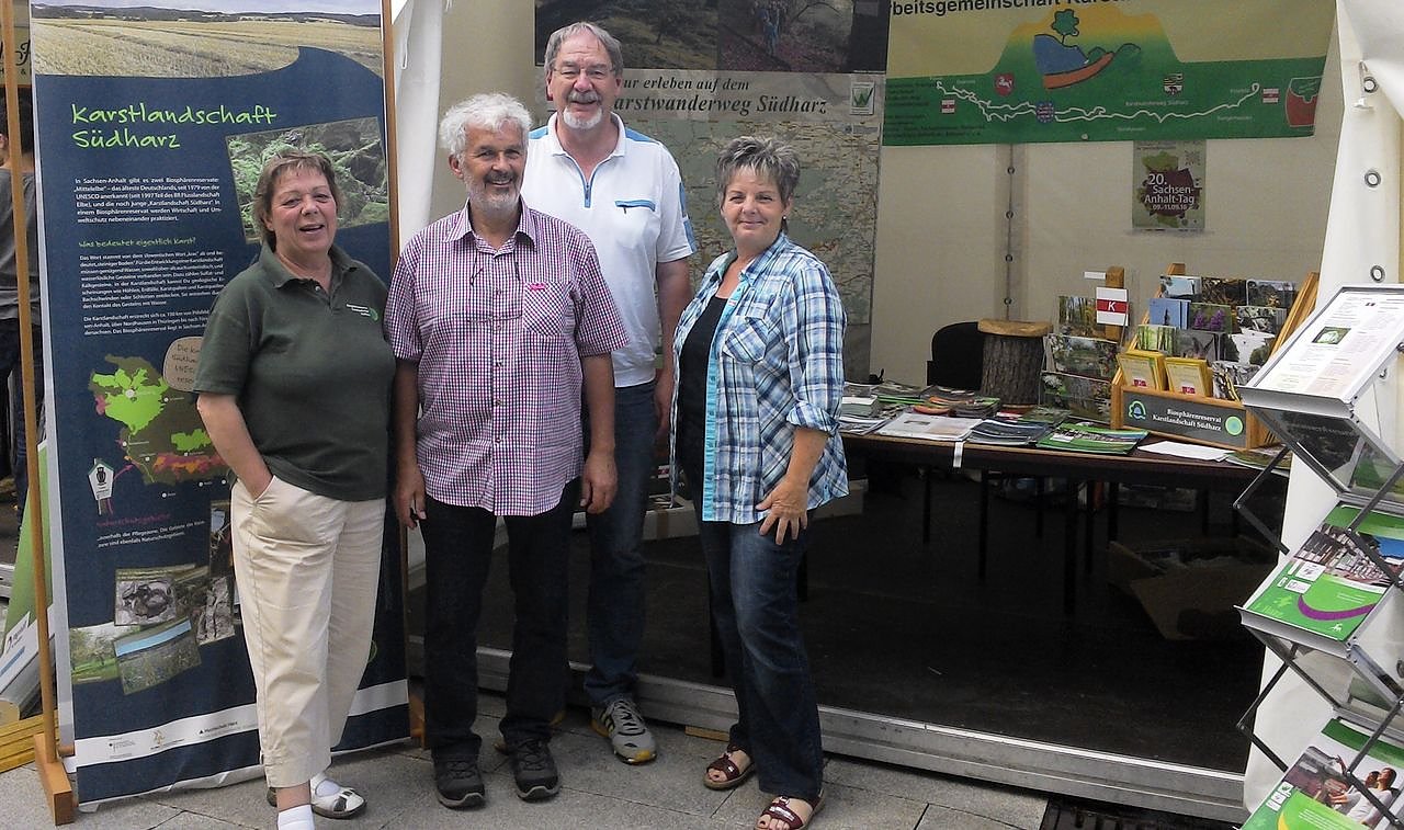 Mit dabei waren auch Vertreter der Arbeitsgemeinschaft "Drei Länder - Ein Weg - Karstwanderweg Südharz", die aus den Landkreisen Mansfeld/Südharz, Nordhausen und Osterode mit einem Informationsstand nach Sebnitz gereist waren.