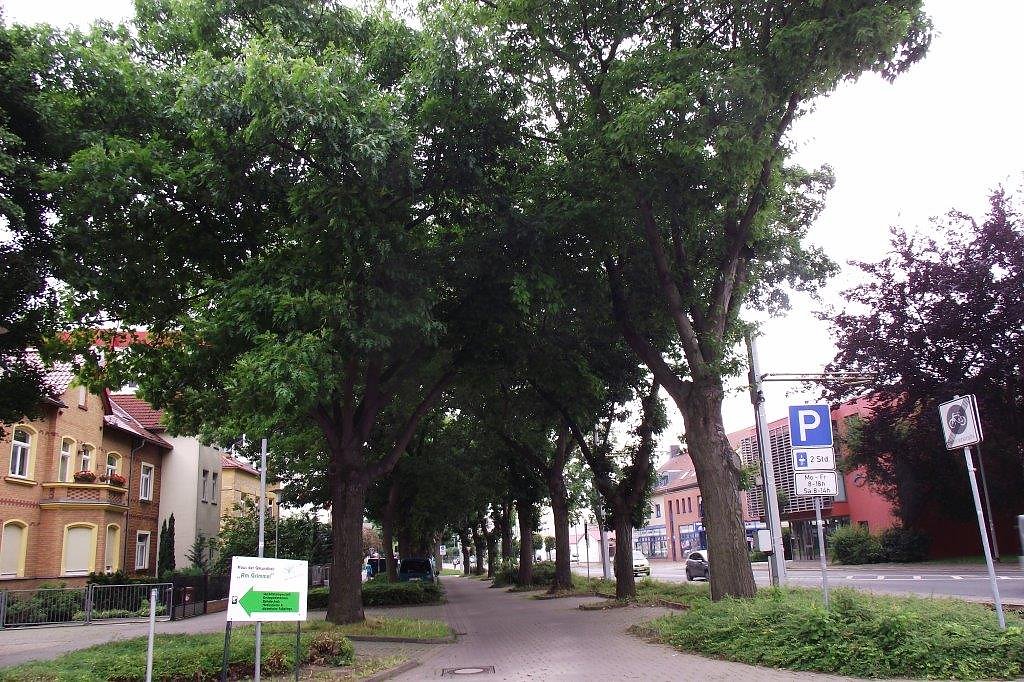 Die Baumreihen dämmen den Lärm der Straße erheblich ein, lassen die Allee einladender und freundlicher als Gesamtbild erscheinen. Ein Plus für Natur, Umwelt, Mensch. Alles überragend die mächtige Platane mit einer Einfassung zwischen 1,80 und 2,20 Meter. Sie könnte älter als die Eichen sein. In ihrer Nähe der seltene Ginkgo. Auch in der Grimmelallee erfolgten Eichen-Neupflanzungen. Weitere sind notwendig, wie zu sehen ist.