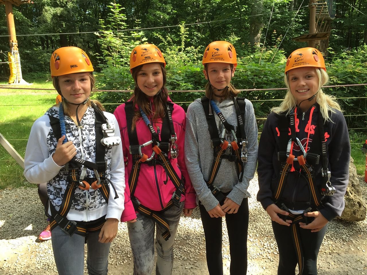 Ein weiteres Highlight stand für Donnerstag auf dem Plan. Mit dem Busunternehmen Keitel fuhren alle gemeinsam in den Hochseilgarten auf den Possen. Grenzerfahrung, Herausforderung, Vertrauen und Verantwortungsübernahmen wurden beim Klettern erlebt. Aufgaben, wie das Balancieren über einen Balken oder die Überwindung der Höhe haben eine nachhaltige Wirkung. Der Hochseilgarten als erlebnispädagogisches Training fördert die sozialen Kompetenzen.