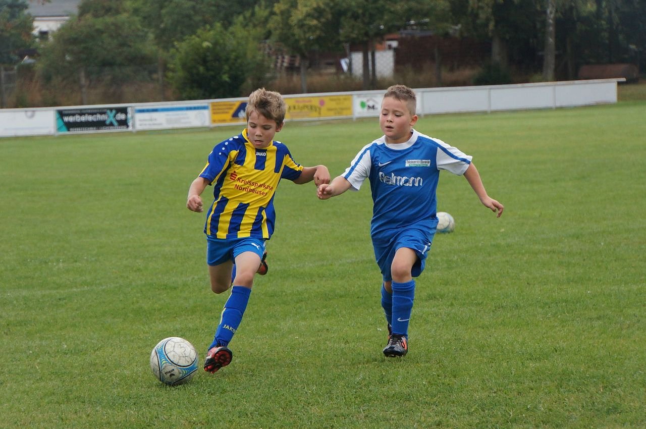 Autor: red...und hatte auch in der 3. Minute die erste Tormöglichkeit, die Julian Reinsch noch vergab. Doch beim nächsten Angriff machte er es besser und konnte im Nachsetzen zum 0:1 einnetzen. Die E 2 versuchte immer wieder durch gefährliche Konter zum Torerfolg zu kommen. Hier taten sich besonders der schnelle Mervan Catovic und der wieselflinke und trickreiche Sebastian Knaus hervor.