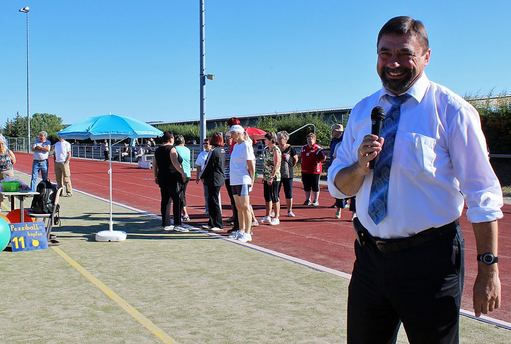 Der Schirmherr des Sportfestes, Sondershausens Bürgermeister Joachim Kreyer, hatte es sich nicht nehmen lassen, die Teilnehmer am Sportfest zu begrüßen, auch wenn im die Zeitnot plagte, denn fast zeitgleich ging es im Bürgerzentrum Cruciskirche um die Regionalkonferenz zur Fortschreibung der Thüringer Radwegskonzeption.