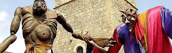 Jeweils vor den Aufführungen waren zwei überdimensionale Monster-Puppen über das Gelände gezogen, um die Gartenschau-Besucher zu den Aufführungen einzuladen – nicht nur die Kinder, sondern auch die Erwachsenen waren, ob des Aussehens und der Größe der Figuren, sichtlich beeindruckt. Begehrtes Foto-Objekt waren die beiden menschengroßen Marionetten-Figuren aus Hecken-Pflanzen, die die Stadtgärtner aus Charleville mit nach Nordhausen gebracht und vor der Bühne aufgebaut hatten.