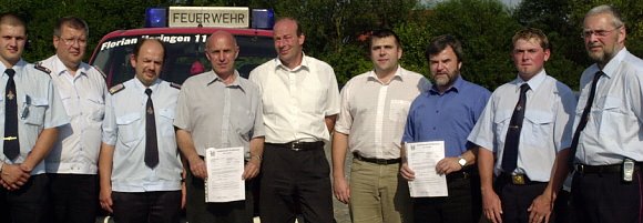 Ilfeld hat noch nicht den Status der Stützpunktfeuerwehr,liegt aber im besonders brandgefährdeten Harz. Seit 2002 bemüht sich die Gemeinde um ein neues Löschfahrzeug. Alle drei derzeit genutzten Fahrzeuge sind Geschenke der Partnergemeinde und über 35 Jahre alt. Mit dem heute von Landrat Joachim Claus überreichten Bescheid über 51.300,- Euro wird ein Tanklöschfahrzeug vom Typ TLF 16-24 angeschafft. Die Ilfelder hatten sich eigentlich das größere Modell 16-25 gewünscht,aber ein kleineres Fahrzeug,was gekauft werden kann,sei doch besser als ein großes,was man sich nicht leisten könne, betonte Erich Etztrodt. Bürgermeister Rene Schröter-Appenrodt sagte,daß sich die Kameraden brennend auf die neue Technik freuen.