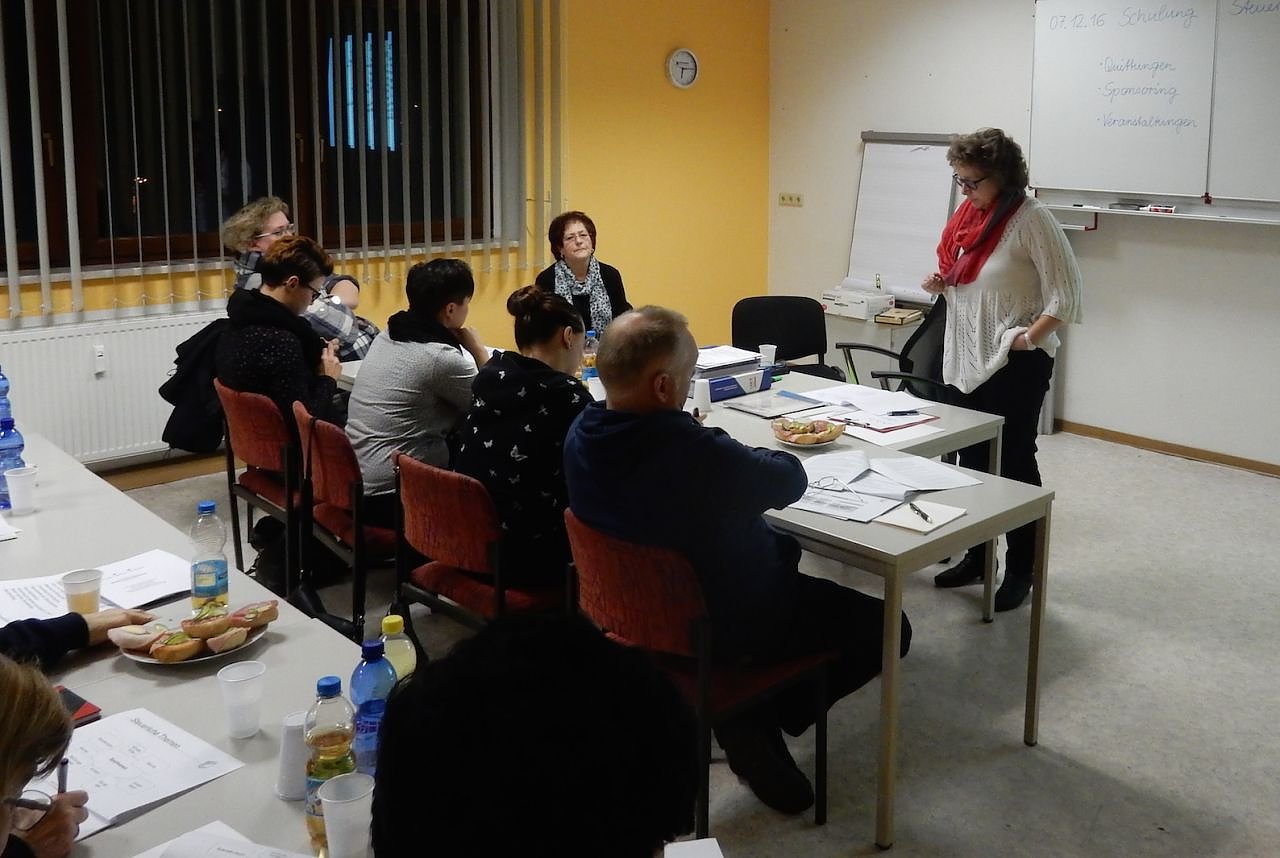 So erfuhren die Teilnehmer, wie Spenden für die Arbeit mit Geflüchteten verwendet und abgerechnet werden können, wann die Bedingungen eines satzungsgemäßen ideellen Geschäftsbereichs erfüllt sind oder wann Ausgaben mit wieviel Prozent Umsatzsteuer berechnet werden bzw. ab wann ein Verein überhaupt umsatzsteuerpflichtig ist. Geklärt wurde auch, wie mit Zuschüssen der Kommunen umgegangen werden soll und was bei einer Aufwandsentschädigung oder einer Übungsleitervereinbarung zu beachten ist.