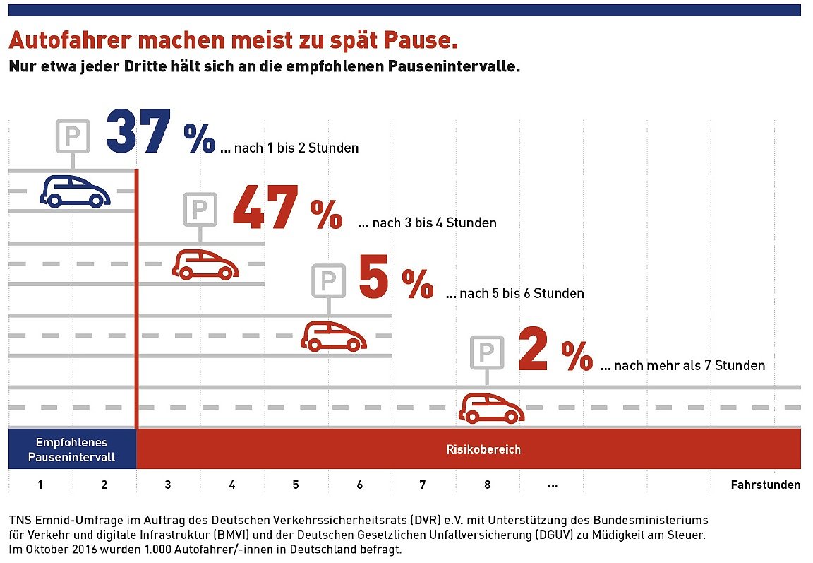 ... im Rahmen der Kampagne Vorsicht Sekundenschlaf! Die Aktion gegen Müdigkeit am Steuer mit Unterstützung des Bundesministeriums für Verkehr und digitale Infrastruktur (BMVI) und der Deutschen Gesetzlichen Unfallversicherung (DGUV) unter 1.000 Autofahrerinnen und Autofahrern durchgeführt hat.