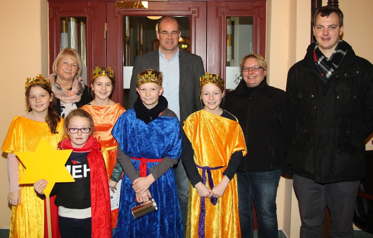 Autor: redMit seinen Sternsingerkollegen Leni, Fiona, Marie und Josephine war Johannes heute Mittag im Landratsamt und sie haben Landrat Matthias Jendricke und der Beigeordneten Hannelore Haase stellvertretend für die Landkreisverwaltung ihren Segen überbracht. Die Dritt- und Viertklässler aus der Evangelischen Grundschule haben heute ihre ersten Station in der diesjährigen Sternsingeraktion.