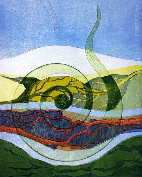 Die Künstlerin zeigt in den Räumen des Fördervereins 27 Werke, das sind Ölmalereien und vor allem Farbradierungen. Einige Titel seien genannt: Sichtung, Blasser Mond, Nach oben, Mondgras, Im Sturm, Schwebe-Zu-Stand, Querungen, Über Tal Klang. In den Vitrinen bietet sie kleinformatige Grafiken an und Postkarten mit ihren Motiven. Alle gezeigten Bilder sind käuflich zu erwerben.