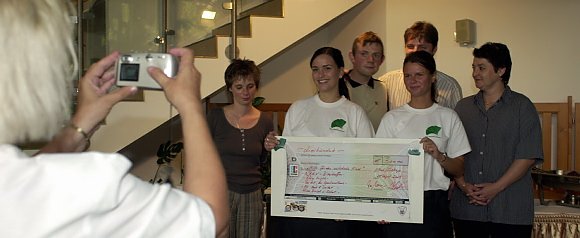 Viele Biker übernachten im neuen Gästehaus von Familie Stubbe. Zum heute ebenfalls stattfindenden Triathlon startete eine Prominentenstaffel, die natürlich sofort gewann. Das Apartmenthaus, die Rechtsanwälte Koch und Boikat und die Firma Biniok und Siebert mußten nun ihr Versprechen einlösen und 300 Euro an den Verein "Hilfe für das autistische Kind" spenden. Das geschah im Rahmen des Motorradtreffens.