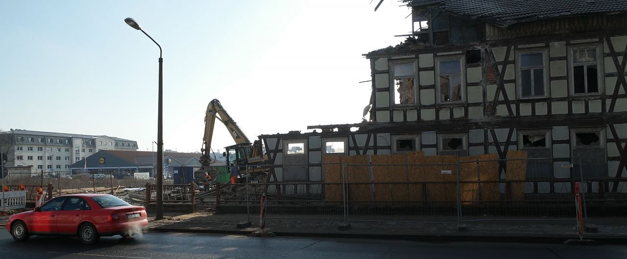 Nordhausen. Dem Abriss, mit dem die Stadt nichts am Hut hat, gingen Aufräumungsarbeiten auf dem Areal voraus. Es gehört Saller Gewerbebau in Weimar. Es machte sich einen Namen im Neu– und Umbau von Fachmärkten und Shopping Centern. Und bewirbt sich mit den Slogan: Wir bauen Gebäude für Menschen. Wir wollen, dass unsere Gebäude unseren Kunden gefallen. Wir wollen, dass Gebäude den Menschen dienen.