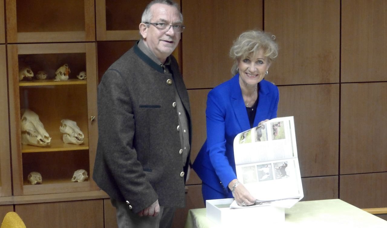 Der Leiter der Jagdschule und langjähriger Revierförster Klaus Thiemrodt und Ministerin Birgit Keller.