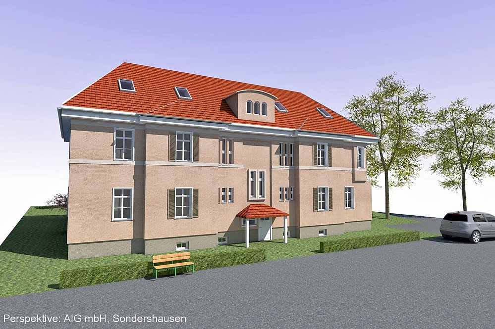 Der nächste Schritt: Komplettumbau der beiden verbliebenen Mehrfamilienhäuser im Jechaburger Weg mit jeweils vier Geschoss- und einer Dachgeschosswohnung mit Balkonen bzw. Loggia im Dachbereich. Nach der Baumaßnahme, die im Herbst 2018 abgeschlossen sein dürfte, werden die Häuser modernste Standards erfüllen und für individuelles Wohnen in bester Lage stehen. Die nachfolgenden Darstellungen vermitteln einen Eindruck über die geplante Außengestaltung dieser Wohnhäuser.