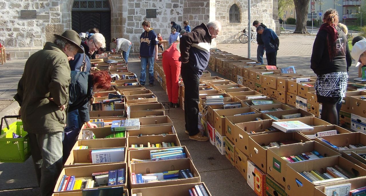 Es ist soweit: In diesen Minuten werden 800 Kisten Bücher auf dem Blasii-Kirchplatz aufgestellt sein. Darin befinden sich etwa 20 000, in den letzten Wochen frisch gespendete, Bücher, die für 3 Euro pro Kilo verkauft werden sollen...