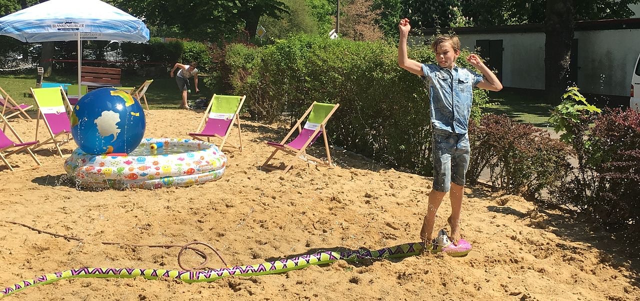 Liegestühle und Selfmade-Palettenmöbel laden nun in einer sommerlichen Atmosphäre zum Chillen ein. Eine Slackline und ein Volleyballnetz sorgen für viel Spaß und an heißen Tagen finden auch mal wilde Wasserschlachten statt.