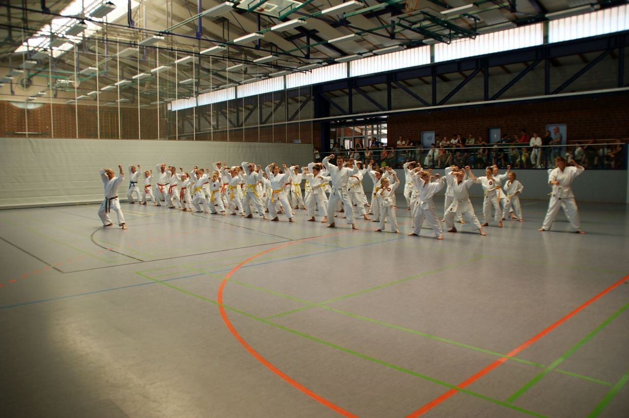 Aufgeteilt in vier nach Leistungsstufen gestaffelte Gruppen, konnte ab Freitagabend jeder Teilnehmer bei den erfahrenen Thüringer Karate-Lehrern (Sensei) Lothar Ratschke aus Erfurt, Frank Pelny aus Nordhausen, Veit Nebelung aus Sömmerda und Thomas Budich aus Jena trainieren. Es ist immer gut, ein paar andere Sichtweisen zu erfahren um sich so sein eigenes Bild zu machen und abzurunden. Das eingespielte Trainerensemble führte die Karateka an einem roten Faden entlang nacheinander durch die drei Hauptbereiche des Karate: die Grundschule (Kihon), die Formen (Kata) und die Anwendungen (Kumite).