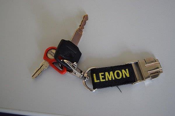 Es handelt sich um einen Schlüsseltyp, der für Motorräder der Marke Honda, Baujahr 1990 bis 2004 ausgegeben wurde. Am Schlüssel befindet sich außerdem ein kleinerer Schlüssel, der zu einem Topcase oder Koffersatz gehört. Auffällig ist ein schwarzes Werbeband der Marke Becks Green Lemon.