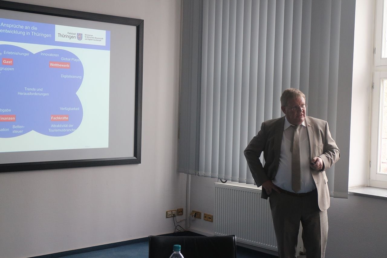 Danach konnte man zum "spannenden" Teil der Sitzung übergehen. Man sei nicht zufrieden mit dem vorliegenden Konzept, sagte Bürgermeisterin Jutta Krauth, wolle sich aber anhören, was der Gast aus Erfurt zu sagen habe. Die Vorstellung übernahm Olaf Dirlam, Referatsleiter für Tourismuspolitik im Thüringer Ministerium für Wirtschaft.