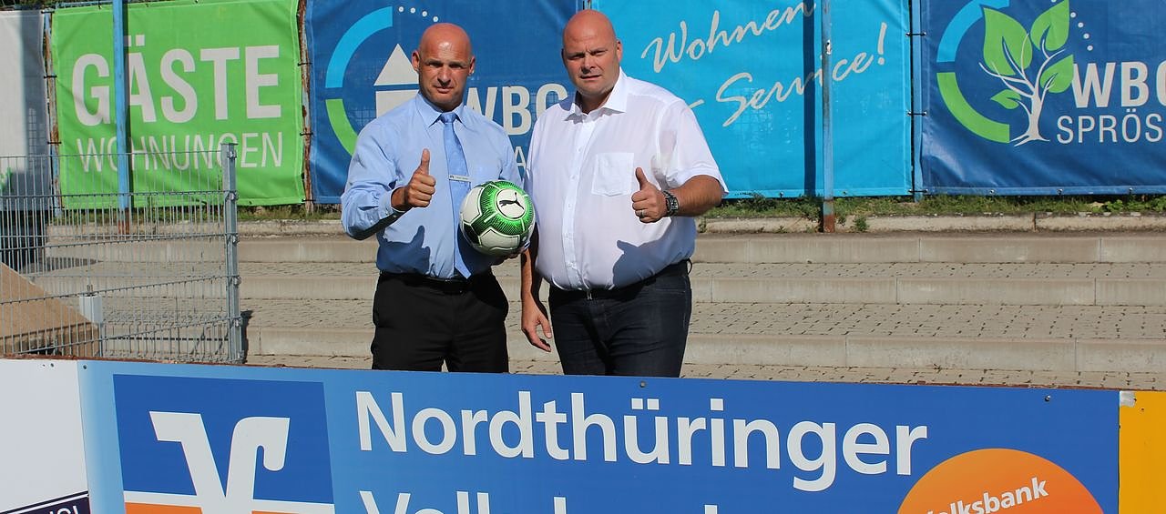 Autor: redAnlässlich zum Sommerfest des Nordhäuser Unternehmerverbands trafen sich Vorstand Peter Herbst und Wacker-Präsident Nico Kleofas am Montag zum Fototermin im Albert-Kuntz-Sportpark.