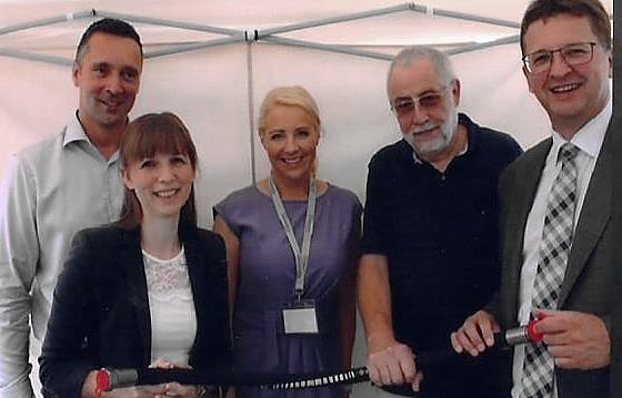 Von links: Niels Neu, Claudia Rheinländer, Carina Schmidt, Roland Handrek und Thomas Seeber... das gemeinsam mit Vertretern aus Wirtschaft und Politik, aber auch mit Geschäftspartnern und den fast 40 Mitarbeiterinnen und Mitarbeitern begangen wird.