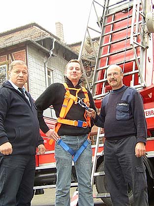 So wurde zum Beispiel die Höhentauglichkeit auf der großen 30 Meter hohen Drehleiter geprobt. Hier galt es, nur 20 Meter angeseilt und ohne zittrige Knie zu überwinden. Die sportliche Fitness wurde in Kraft-, Ausdauer- und Gleichgewichtsübungen sowie im Kurzstrecken- und 3000 –Meterlauf getestet. Beim praktischen Test waren Geschicklichkeit und handwerkliche Fähigkeiten gefragt. So musste beispielsweise ein Behälter mit einem Gewicht von einer Tonne in eine gleichmäßige Höhe von 10 cm in einer bestimmten Zeit gebracht werden. Dafür standen verschienene selbst zu wählende Gerätschaften und Hilfsmittel zur Verfügung. Weitere Aufgaben waren Radwechsel oder die Sicherung eines einsturzgefährdeten Bauteiles.