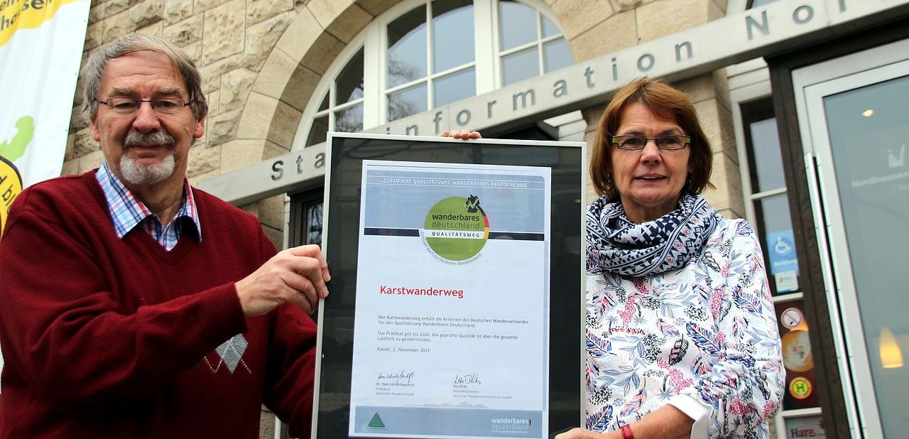 Der Südharzer Karstwanderweg ist jetzt offiziell als "Qualitätsweg Wanderbares Deutschland" zertifiziert. Darauf weist jetzt auch eine Urkunde in der Nordhäuser Stadtinformation hin...