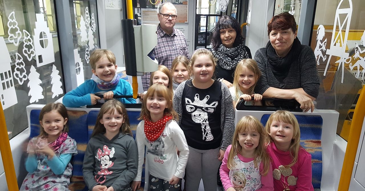 Kinder aus dem Domschlösschen schmücken eine Straßenbahn (Foto: Stadtwerke Nordhausen)