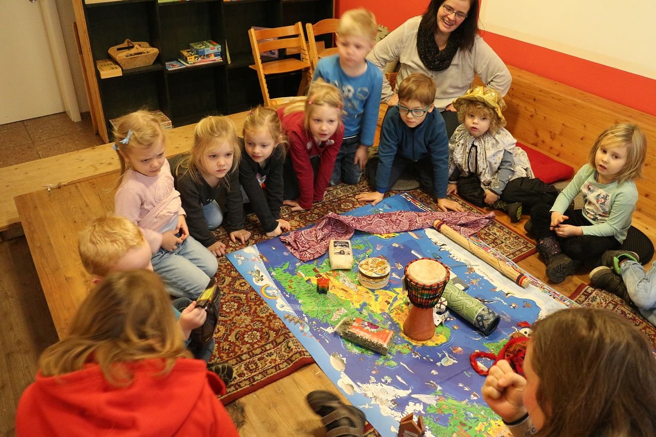Wenn man klein ist, scheint die Welt riesig und beschränkt sich doch auf das, was man direkt erlebt. Wie weit die Welt ist und wo eigentlich all die schöne Weihnachtsschokolade und andere schöne Dinge herkommen, das erkundeten heute Kindergartenkinder im Weltladen...