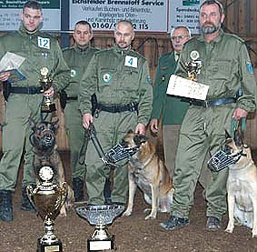 Insgesamt gingen 21 Diensthundführer an den Start. Die jeweils drei besten Hundeführer aus den sieben Thüringer Polizeidirektionen durften an diesem Samstag ihre Dienststelle vertreten. Den Pokal für den Einzelsieger übergab Innenstaatssekretär Stefan Balduß, weitere Pokale übergaben unter anderen das Mitglied des Bundestages Manfred Grund und Frau Lehmann, Abgeordnete im Thüringer Landtag (beide CDU). Damit erfuhren die Diensthundeführer und ihre Arbeit auch die ihnen gebührende Anerkennung.