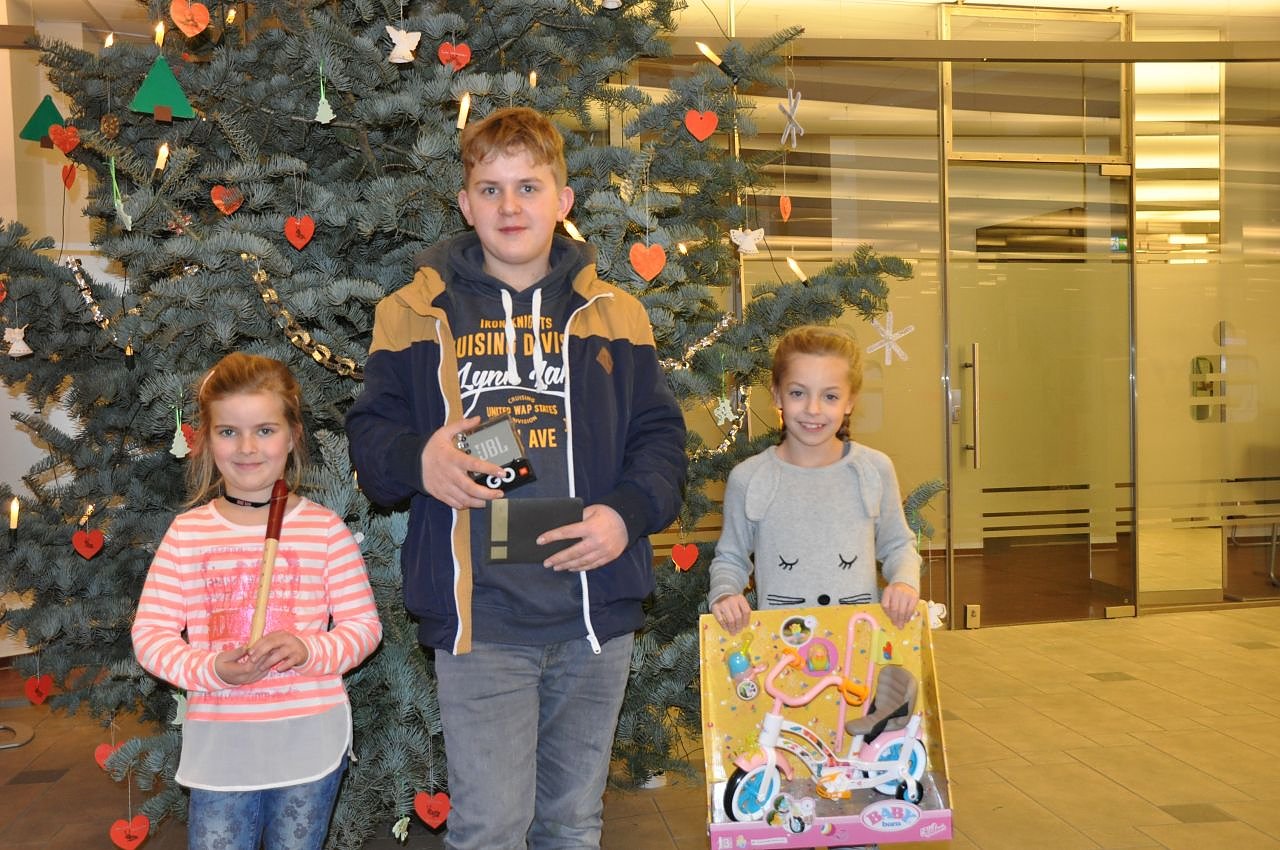 Bei der Nikolausziehung im PS-Los-Sparen, die am 6. Dezember im Rahmen des Adventskalenders des Theaters Nordhausen stattfand, konnten alle Kinder einen Wunschzettel abgeben. Drei Wunschzettel wurden vom Weihnachtsmann gezogen. Lina J., David und Lina G. nahmen heute glücklich ihre Geschenke entgegen.