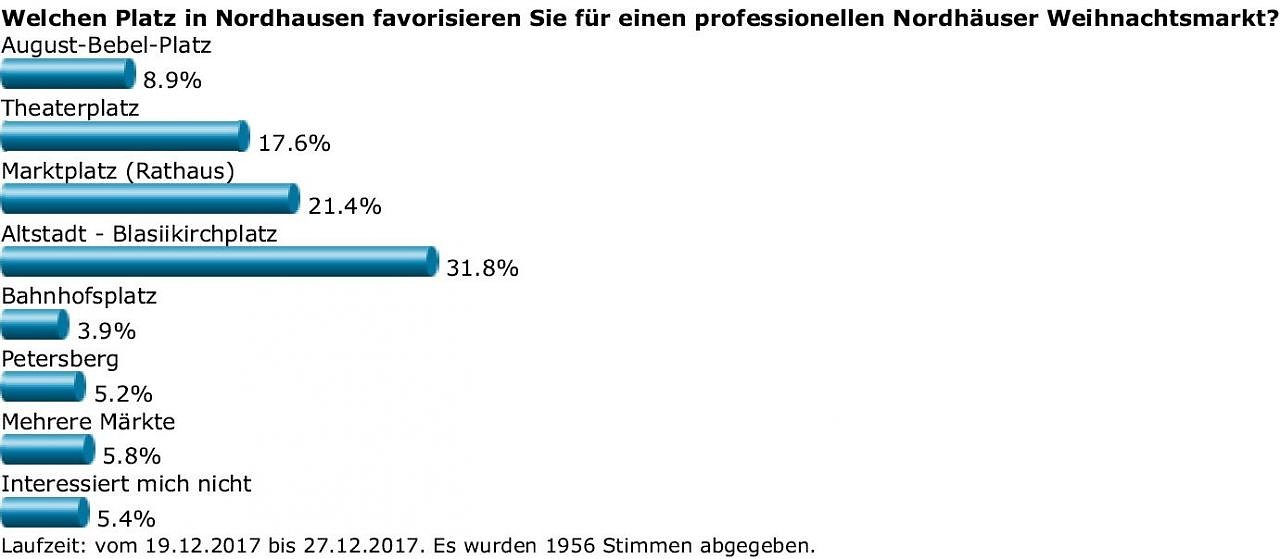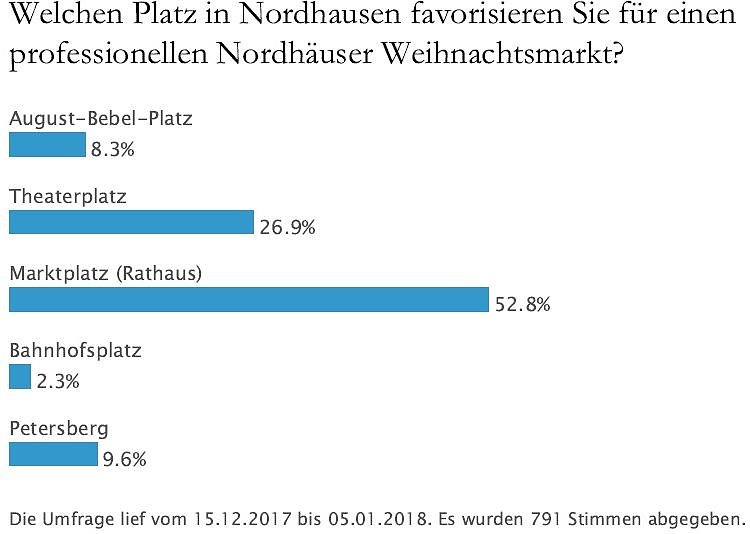 Die Umfragen zum künftigen Platz eines Weihnachtsmarktes in Nordhausen sind gelaufen. Auf der Internetseite der Stadt und in der nnz wurde gefragt und es gab zwei eindeutige Antworten...