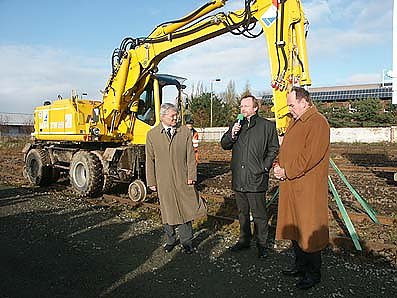Der Ministers für Bau und Verkehr des Landes Sachsen-Anhalt, Dr. Karl-Heinz Daehre, sowie der Geschäftsführer der HSB, Matthias Wagener, nahmen den symbolischen Spatenstich mit der Entfernung der ersten noch vorhandenen Gleise vor. Dieses Bauvorhaben stellt die größte Investition in den Hochbau in der 13jährigen Geschichte der HSB dar. Mit diesem Bauwerk geht der langgehegte Wunsch in Erfüllung, den täglich im Einsatz befindlichen Fahrzeugen eine dem heutigen Stand angemessene Reinigungs-und Unterstellmöglichkeit zu bieten.