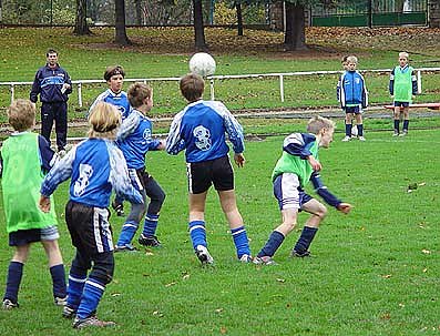 Im Vordergrund steht der Spaß am Fußballspielen, beschreibt Übungsleiter Bernsdorf die Situation. Aber wir wollen den Jungs auch ein Gefühl für die eigene Leistung geben, den Ehrgeiz anstacheln und ihnen Grundwerte von Disziplin und Ordnung vermitteln. Besonders auf die technischen Fertigkeiten ihrer Spieler legen die Trainer viel Augenmerk. Im Training arbeiten sie an der Schusstechnik, jonglieren und üben kurze und lange Sprints. Den schulischen Werdegang ihrer Schützlinge betrachten die drei Coachs aufmerksam und halten den Kontakt zu Eltern und Lehrern. Auftretende Probleme versuchen alle gemeinsam zu lösen. Über Training und Spielbetrieb hinaus werden Freizeitveranstaltungen organisiert. So gibt es jährliche Weihnachtsfeiern, Teilnahme an verschiedenen Hallenturnieren und ein Spielchen Väter gegen Söhne.