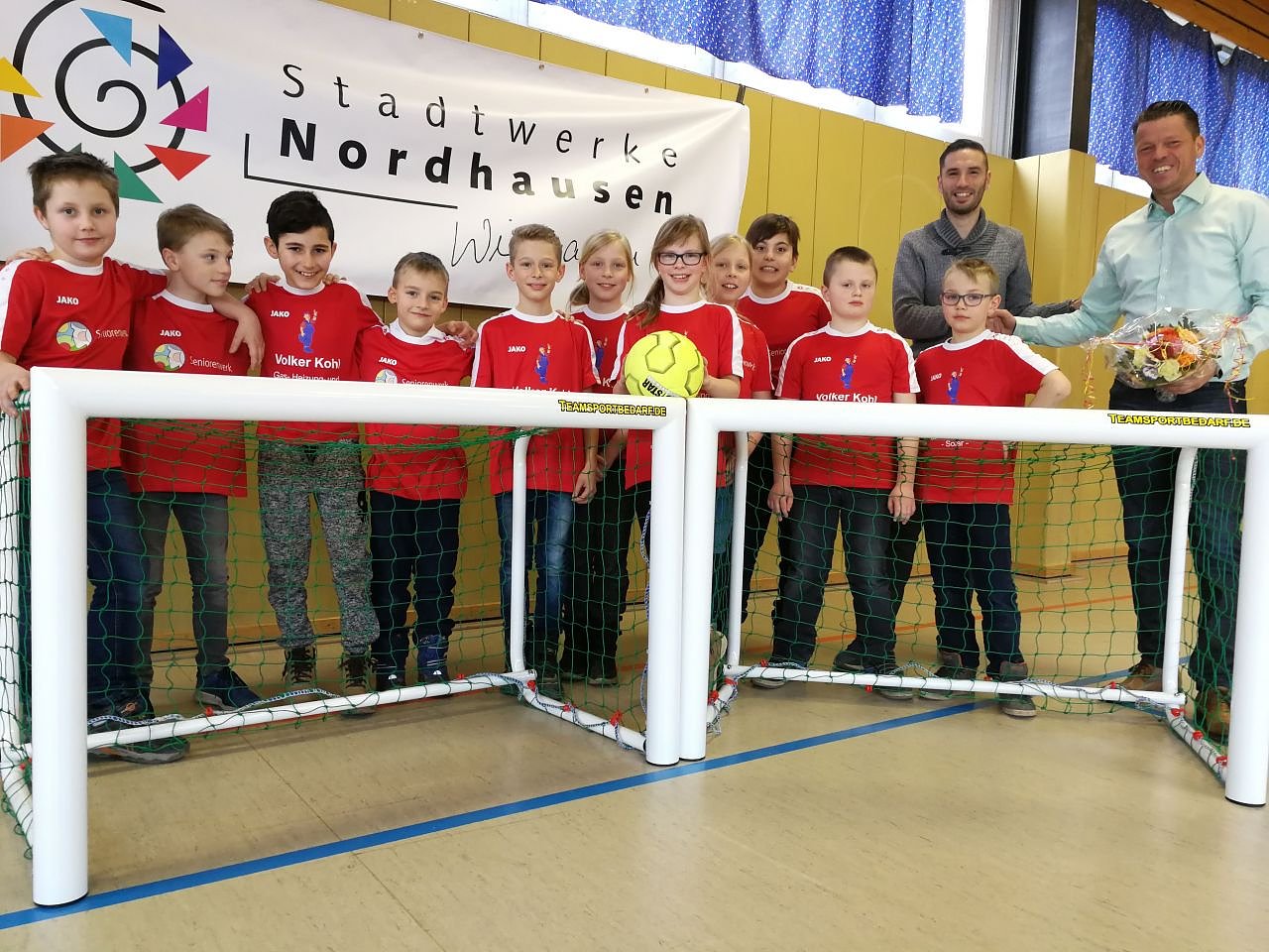 In der letzten Woche übergab Jens Eisenschmidt, Prokurist der Stadtwerke Nordhausen, zwei Mini-Fußballtore an die Grundschule Niedersalza...