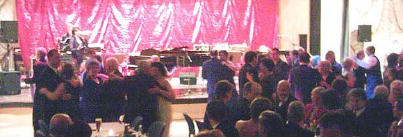 Generalmusikdirektor Hiroaki Masuda gab ein paar Tanzeinweisungen und dann wurde zu Walzer, Polka und Tango aufgerufen, was durch ein reichliches Buffet und einen zu späten Blumenstrauß belohnt wurde. Die Gesellschaft präsentierte sich in schönen Abendkleidern und sparte nicht an guter Laune, was die Tanzfläche ständig gefüllt hielt.