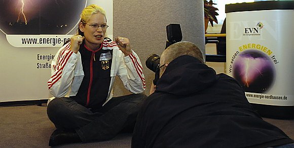 Ein kleines Jubiläum wird gefeiert, das fünfte Energie Kugelstoß Indoor in der Wiedigsburghalle. Topathleten aus Deutschland und dem Rest der Welt kommen zu diesem Ereignis nach Nordhausen. Eine Sportlerin besuchte die EVN schon heute. Als Zweitplazierte bei Olympia in Athen ist Nadine Kleinert eine der besten Kugelstoßerinnen. Sie will in der Wiedigsburghalle mindestens 18, 50 Meter weit stoßen, versprach die 1,90 Meter große Athletin.