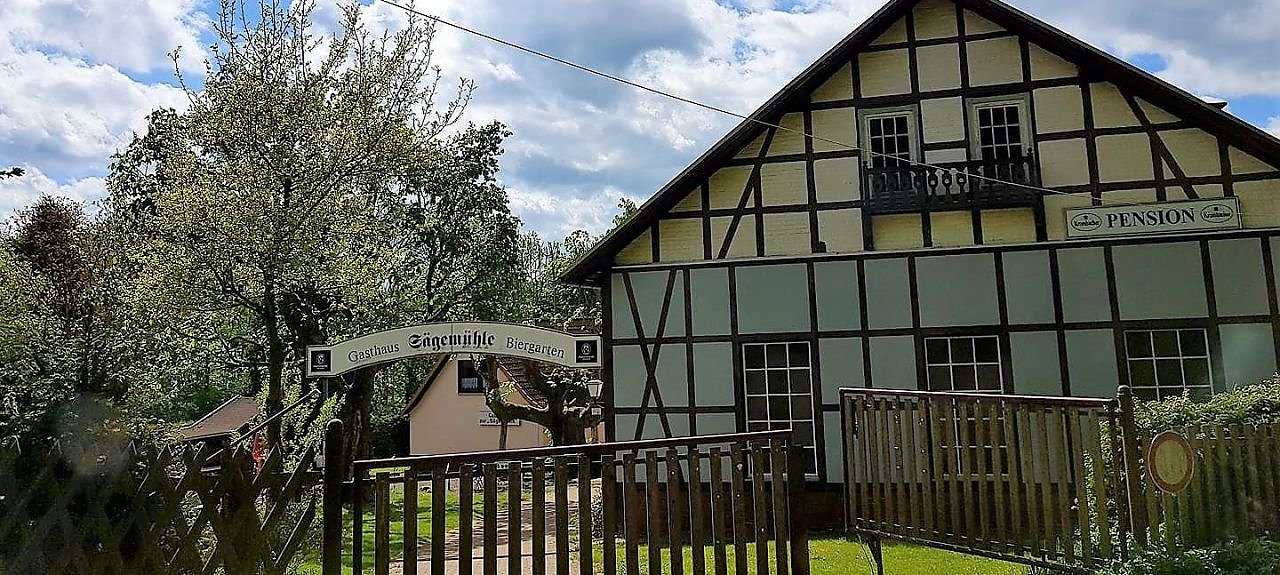 Ein schönes Fleckchen Erde. Direkt am südlichen Fuß der Abdachung des Harzgebirges im Nordosten von Herrmannsacker, ungefähr 300 Meter von der bekannten Burgruine Ebersburg entfernt. Dort steht die Sägemühle. Das Leben für die Gastwirtschaft wird immer schwieriger, auch weil die Bürokratie nicht mitspielt...