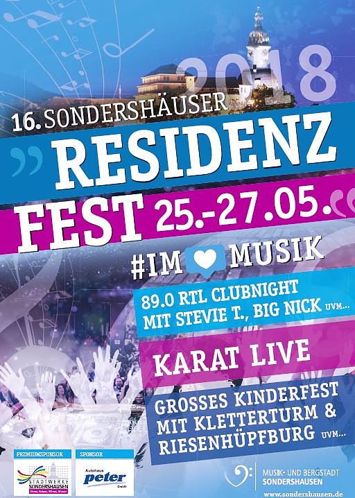 Am Wochenende vom 25.05. bis 27.05.2018 ist es wieder soweit, die Stadt Sondershausen lädt alle Bürgerinnen und Bürger aber auch ihre Gäste zum 16. Sondershäuser Residenzfest ein, welches in diesem Jahr gemeinsam mit dem 10. Sondershäuser Autofrühling stattfindet. Hier gibt es die Einzelheiten...