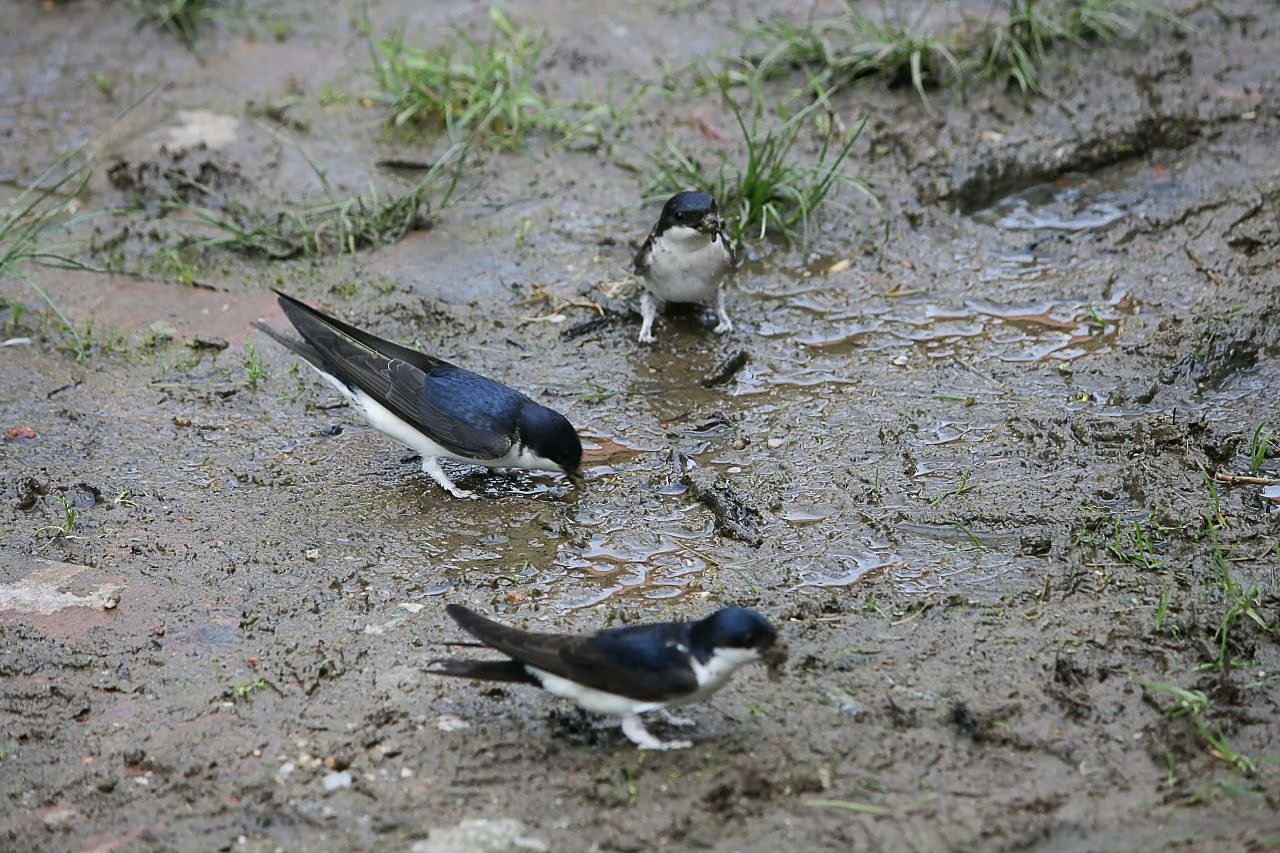 Mehlschwalben in Schlammpfütze (Foto: E. Biedermann)
