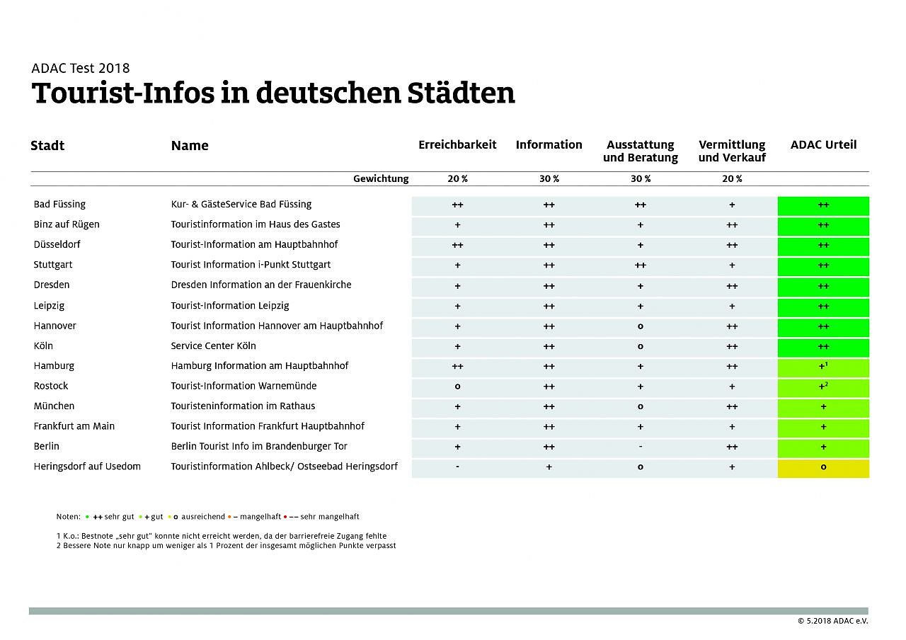 Überprüft wurden die Tourist-Infos in den 14 deutschen Städten mit den höchsten Übernachtungszahlen. Die Inkognito-Tests vor Ort fanden im Oktober 2017 statt. Daneben wurden Anfragen per Telefon und Mail gestellt sowie der Informationsgehalt der Internetseite überprüft.