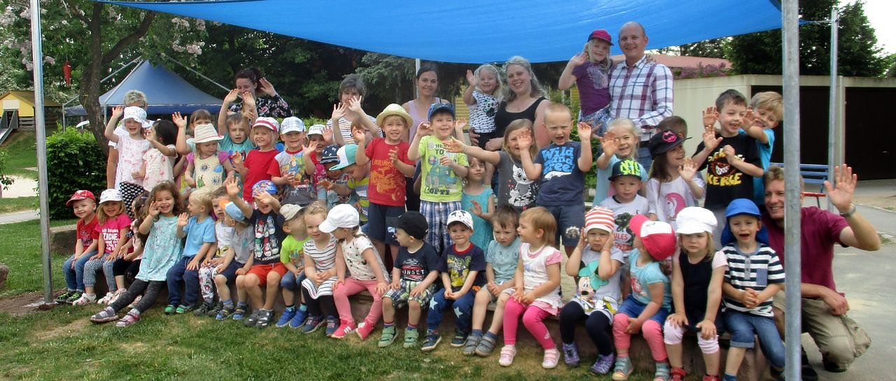 Kinder und Erzieher der Kindertagesstätte