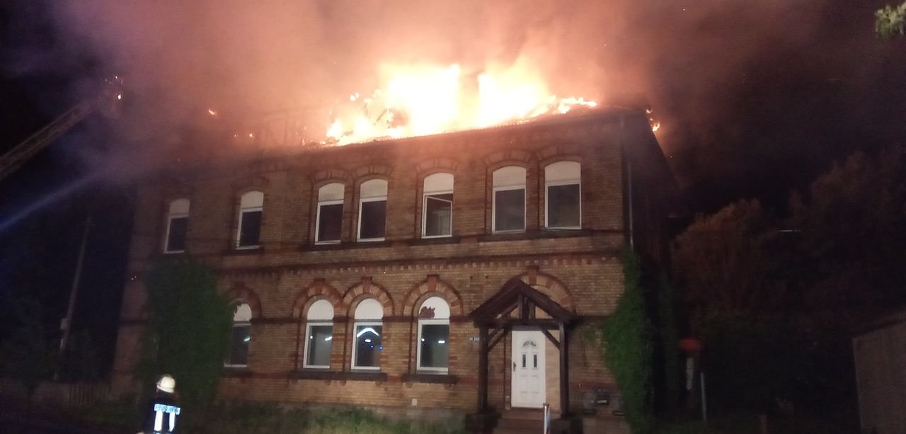 Dort stand gegenüber dem Bahnhof ein leerstehendes Gebäude in Flammen. In der zurückliegenden Zeit war an dem Haus lediglich das Dach saniert worden.