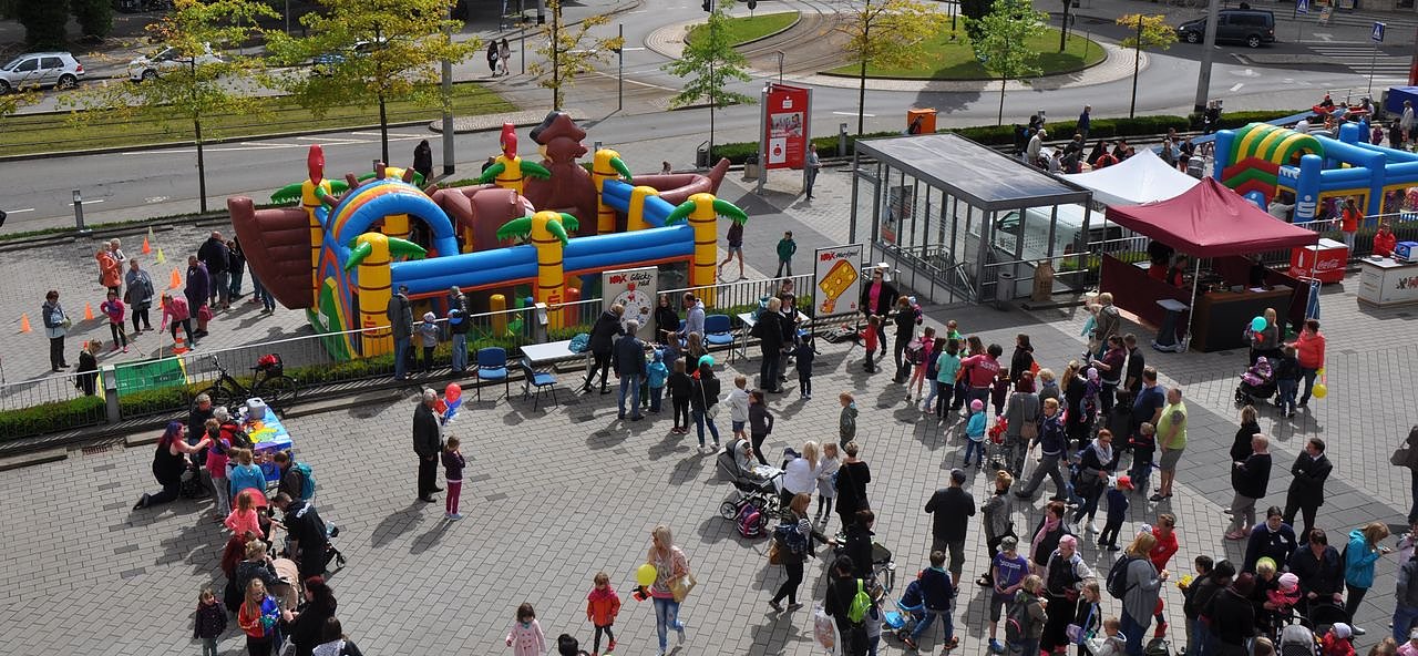 Die große Party beginnt um 14 Uhr und endet gegen 18 Uhr. Viele Überraschungen warten auf die Kids. DJ Michael und Clown Ferdi sorgen für Spaß und Unterhaltung. Der Parkplatz der Sparkasse wird in eine Spiellandschaft verwandelt mit Rutsche, Hüpfburgen, Schmink- und Bastelständen und vielem mehr.