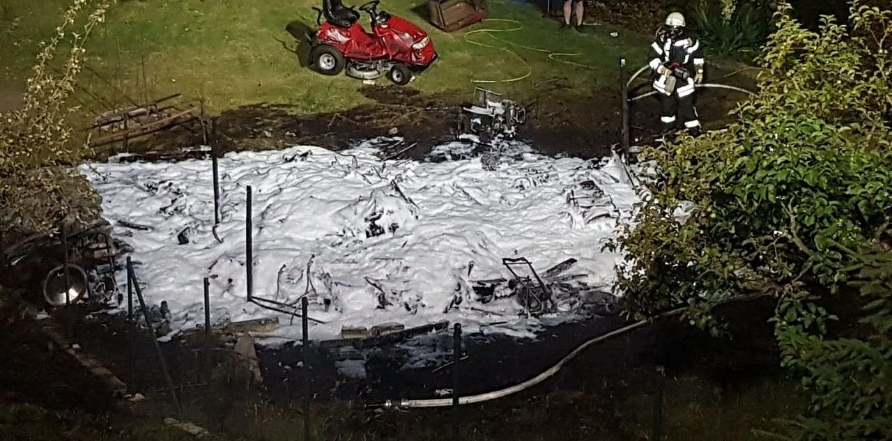 Als Brandursache werden vorerst Reste einer Grillparty angenommen. Neben der Laube wurde auch ein Rasentraktor in Mitleidenschaft gezogen. Die Polizei hat Ermittlungen wegen fahrlässiger Brandstiftung aufgenommen.