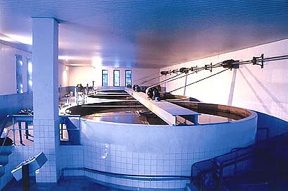 Bevor das Wasser allerdings in die Aufbereitung kommt, nutzt man seinen Druck aus, den es auf dem Weg von der 450 hoch gelegenen Talsperre im Harz bis zum 200 Meter tiefer liegenden Wasserwerk mitbringt. Schardt: Das Wasser treibt eine 80-Kilowatt-Turbine an. Eine ähnliche Turbine habe es schon einmal gegeben: Die damalige Siemens-Turbine war ab 1905 jahrzehntelang im Betrieb – bis sie zu DDR-Zeiten leider für die Erfüllung des Schrottplanes draufging. Die Steuerung der Turbine liefe – wie auch sämtliche anderen Prozesse im neuen Werk – vollautomatisch. Sollten irgendwelche technische Probleme auftreten, werde der Bereitschaftsdienst per Funk alarmiert – das erledige u.a. der Computer.