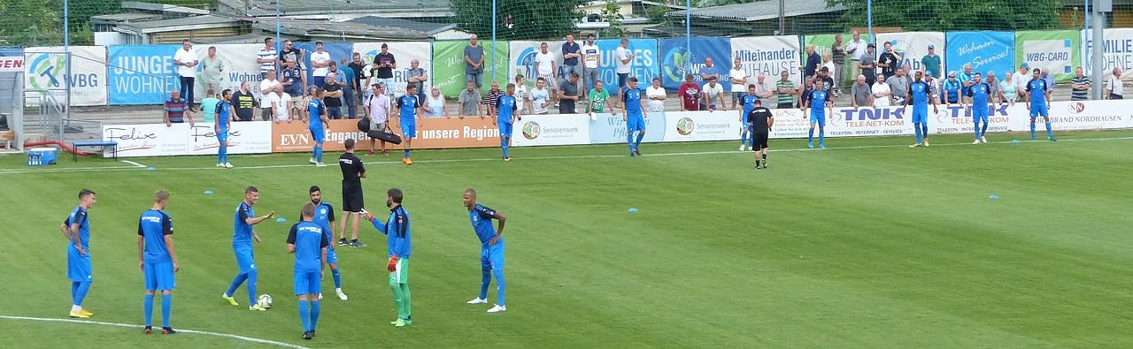 Die Mannschaften sind aufgelaufen, alle Vereine der Liga wurden durch Auflaufkinder symbolisiert und zum ersten Mal wurden die Nordhäuser Fußballfahnen hereingetragen.