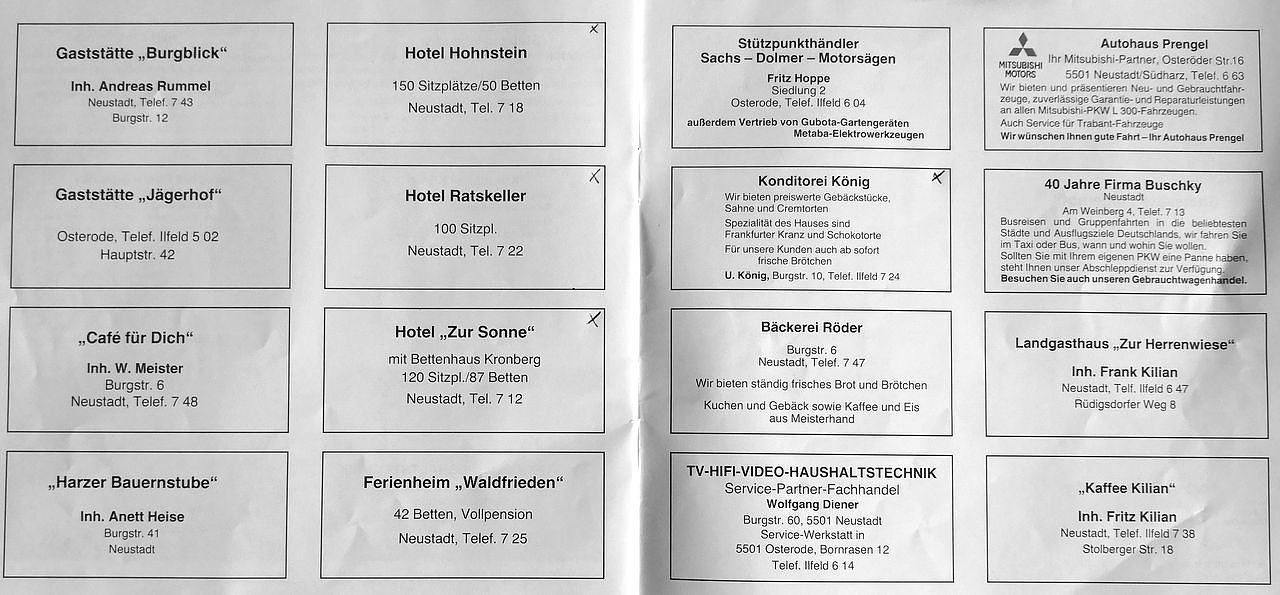 Blick in einen Prospekt von Neustadt Anfang der 90er Jahre. Nur noch die mit einem Kreuz gekennzeichneten Gaststätten und Hotels gibt es heute noch