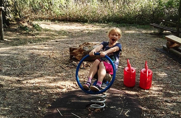 Dass es sich nach getaner Arbeit vortrefflich spielen lässt, zeigt die kleine Finja Sauerland aus Nordhausen, die gemeinsam mit ihrem Opa zuerst gegossen hat und dann voller Freude im Ahornparkt tobte.