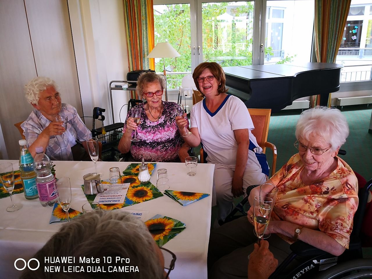 Zu selbstgebackenem Kuchen wurden Kaffee und Sekt gereicht. Das KMG Mehrgenerationenhaus Sülzhayn veranstaltet diese Nachmittage regelmäßig, damit Bewohnerinnen und Bewohner, Ihre Angehörigen und die Mitarbeiterinnen und Mitarbeiter der Einrichtung in gutem persönlichem Kontakt zueinander stehen, sich über anstehende Themen austauschen und Zeit miteinander verbringen, die für alle Beteiligten ein wichtiges Erlebnis ist.