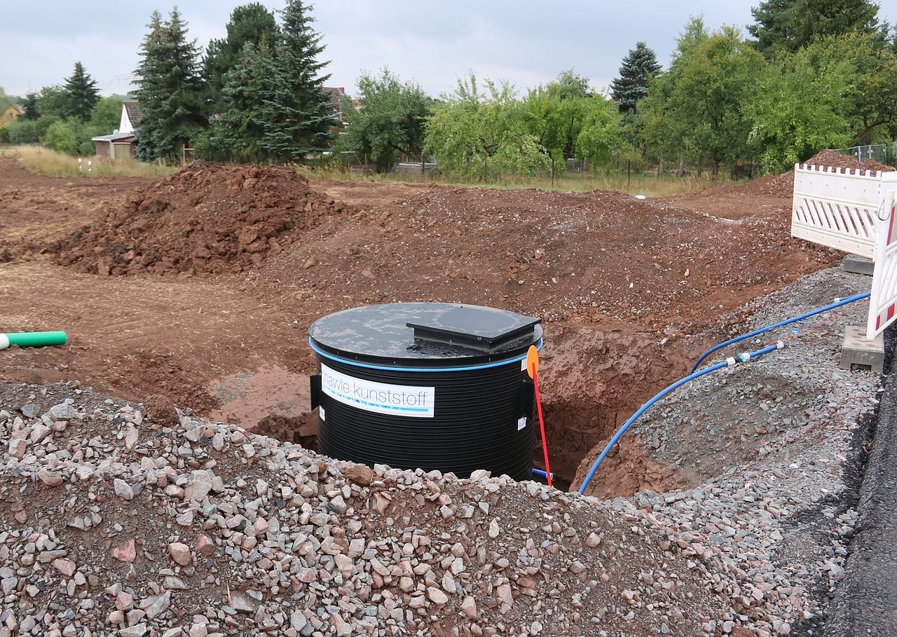 In einem letzten Schritt wurde Ende August am Ortsrand von Harzungen eine Niederdruckanlage (Bild) errichtet und an die neue Leitung angeschlossen, damit der Versorgungsdruck beibehalten und nicht zu hoch wird.