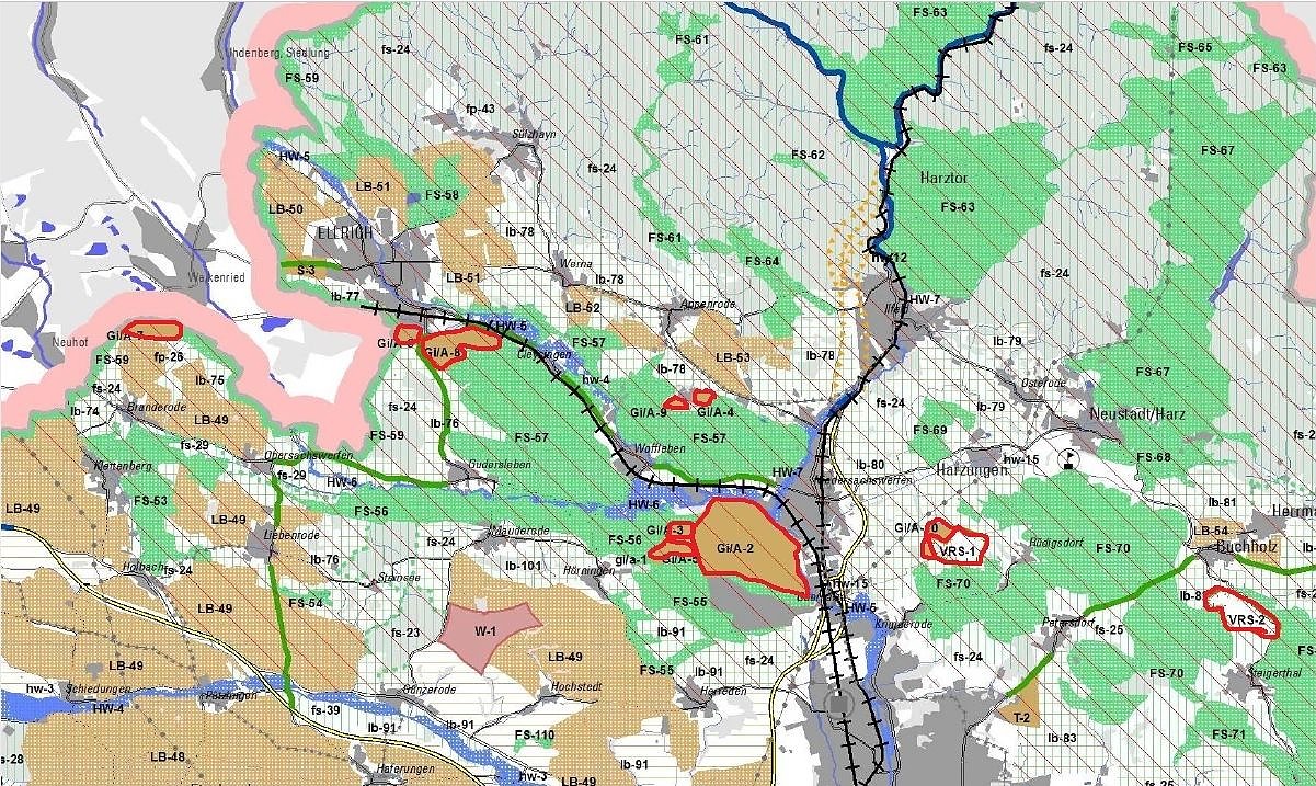 Rot: Vorranggebiete Gipsabbau1) Die Ausweisung neuer Vorrangflächen zur Gips- bzw. Anhydritgewinnung lehnen wir ab.